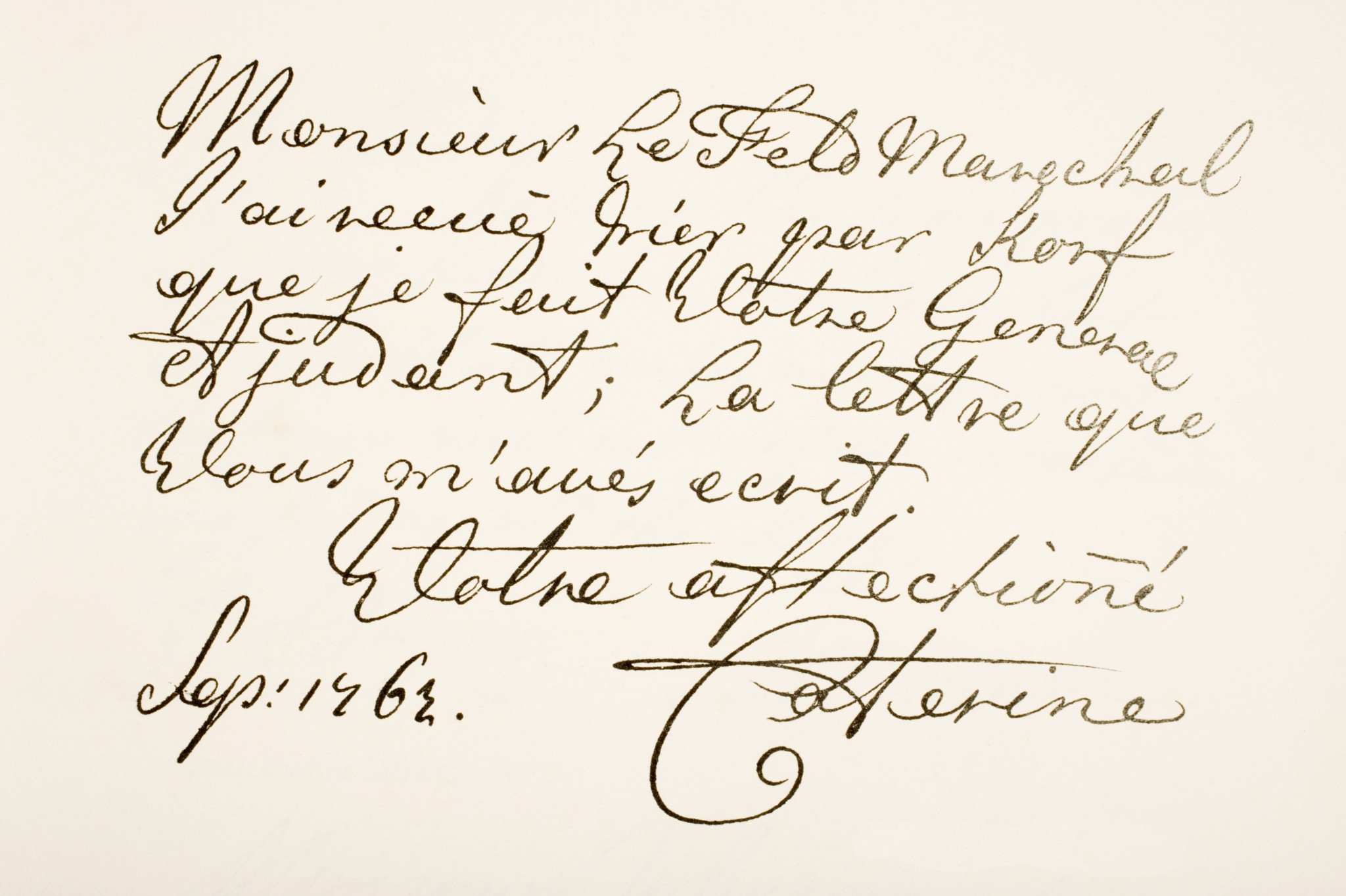Когда дочь прусского князя София Фредерика Августа только приехала в Россию к суженому, она владела немецким и французским, но приложила все силы к тому, чтобы как можно лучше освоить язык будущих подданных. Императрица Екатерина II говорила по-русски чисто и во время поездки в Прибалтику, например, демонстративно выступала перед народом с речью именно на этом языке. Самодержица даже пробовала себя в литературе: сочинила на русском несколько пьес. На письме Екатерина допускала ошибки, но частота их была на уровне общей грамотности российской аристократии в эпоху неустоявшихся орфографических норм и отсутствия систематического образования.