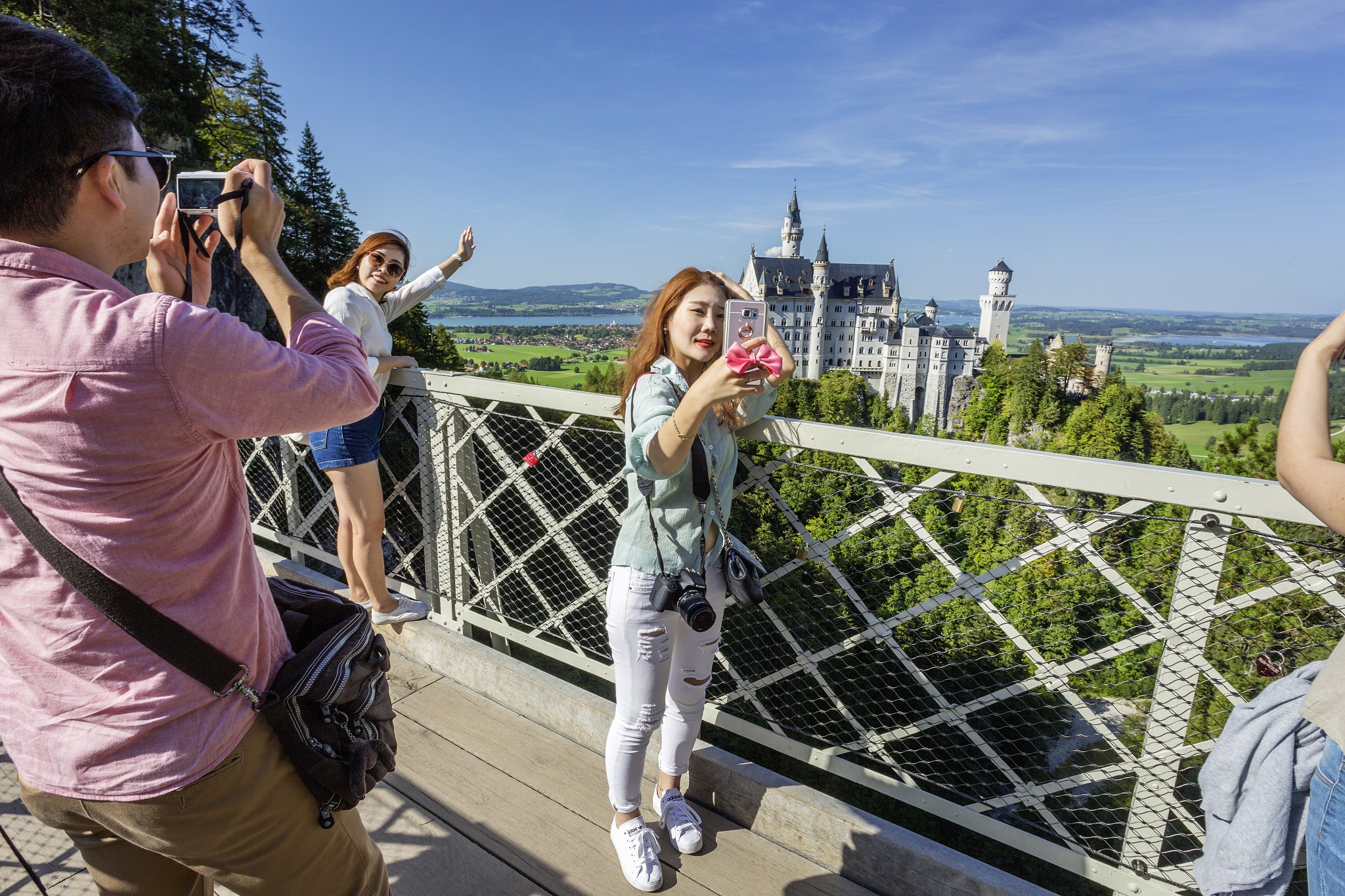 С моста Марии открывается лучший вид на романтический замок Нойшванштайн, построенный в 1869– 1886 годах баварским королем Людвигом II. К мосту, расположенному на высоте 90 метров над ущельем, король, известный склонностью к неординарным решениям, тоже приложил руку. Мост периодически бывает закрыт, о чем говорят указатели, тем не менее на нем постоянно топчется целая толпа туристов.