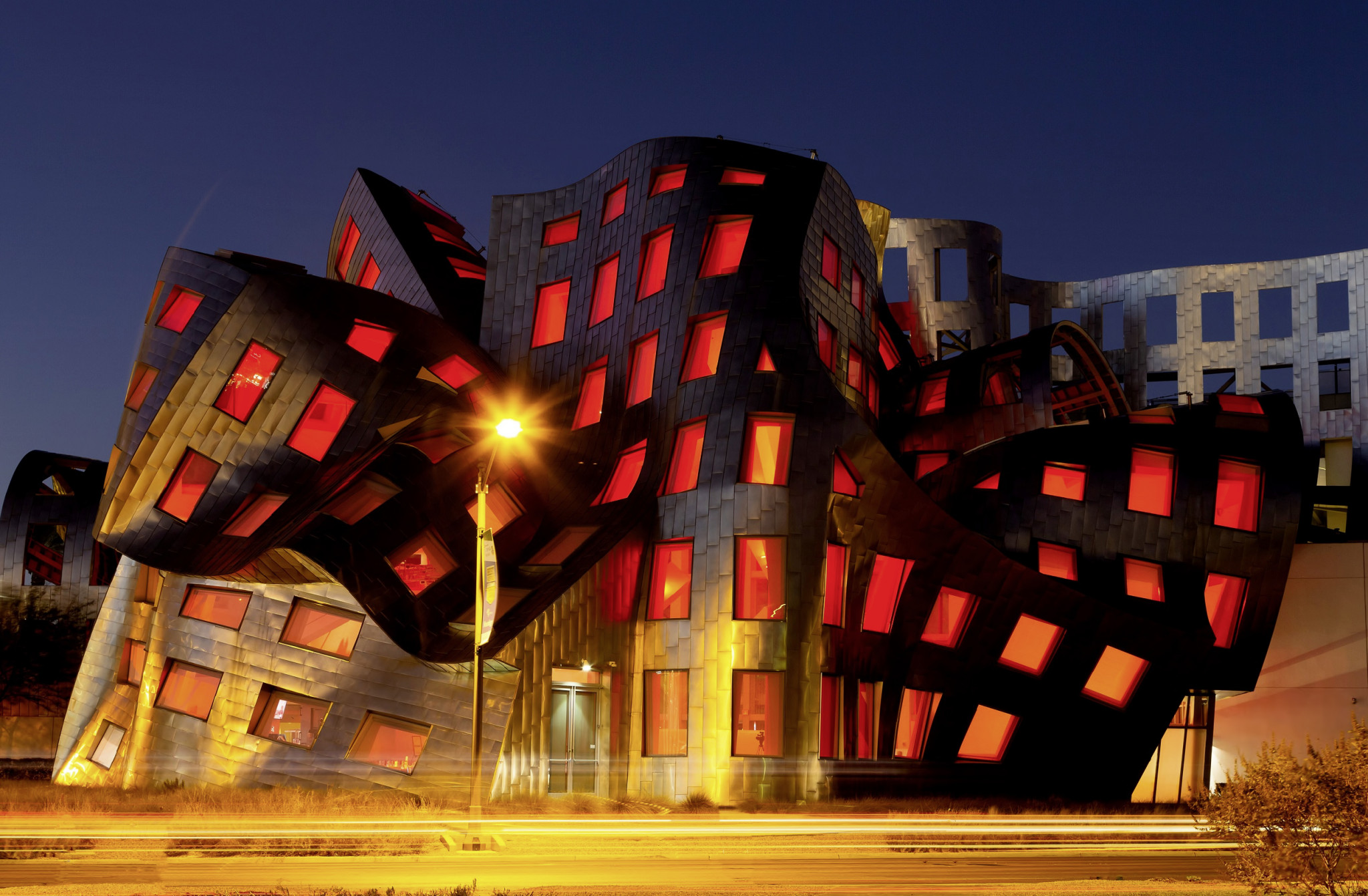 Едет крыша и плавится мозг — первое впечатление, которое возникает при взгляде на здание, спроектированное знаменитым Фрэнком Гери, автором Танцующего дома в Праге и музея Гуггенхейма в Бильбао. На самом же деле в Центре здоровья мозга Lou Ruvo с 2010 года исследуют и лечат болезни Альцгеймера, Паркинсона, Хантингтона, рассеянный склероз и другие головные беды.