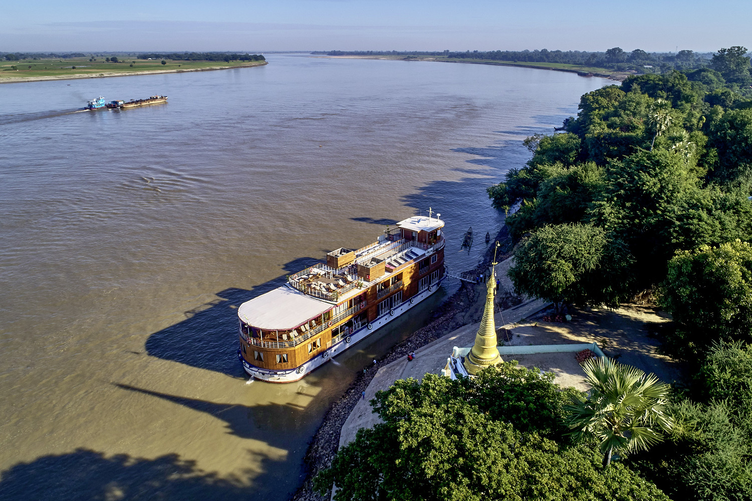 Иравади, главная река Мьянмы, пересекает страну с севера на юг. Традиционная торговая и культурная магистраль соединяет города, каждый из которых в свое время был столицей древних королевств. Значимость реки можно определить по количеству ступ и пагод, золотыми огоньками вспыхивающих под лучами солнца на правом и левом берегах, на вершинах холмов и на пологих зеленых склонах.