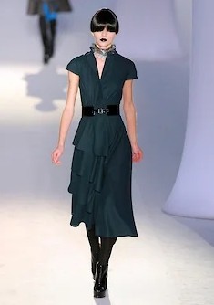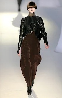 Одна из самых знаменитых коллекций Yves Saint Laurent времен Стефано Пилати, осень-зима 2008, как раз и была таким реваншем. Очень структурная, построенная в четких линиях, даже жесткая — и эта жесткость подчеркивалась черными губами моделей и одинаковыми черными париками, закрывавшими челками глаза (а в некоторых случаях еще и узкими черными очками),— в рецензиях писали тогда, что по подиуму шли «футуристические женщины-автоматы». Вся коллекция была устроена вокруг жакетов самого сложного кроя, и тут Пилати показал все свои профессиональные навыки и умения, свой класс в том числе в tailoring, благодаря которому после Yves Saint Laurent его пригласили в Ermenegildo Zegna делать мужские кутюрные коллекции.