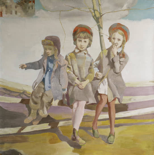 Таня Рауш коллекционирует изображения детей: фотографирует сама, выбирает снимки из семейных архивов, покупает старые карточки на барахолках и аукционах. И переводит фотографии в живопись так, что в переводе теряется все сиюминутное и проступает сущностное. Кургузые пальтишки, меховые шапочки, валенки с галошами, сандалики с носочками, рейтузы, чулочки, салазки и лошади-качалки, пупсы и мишки, судорожно прижатые к груди как последняя защита и опора,— те атрибуты времени, что пойманы на снимках, сохраняются и в картинах. Но дети, часто являющиеся на золотых иконных или облачных апофеозных фонах, из своего конкретного времени выпадают. Выпадают они и из земной реальности, теряют объем и цвет, уплощаются и развоплощаются, попадая в реальность другого порядка. Акт перевода равен акту трансфигурации: выхваченные из смертного существования, они преображаются к жизни вечной.