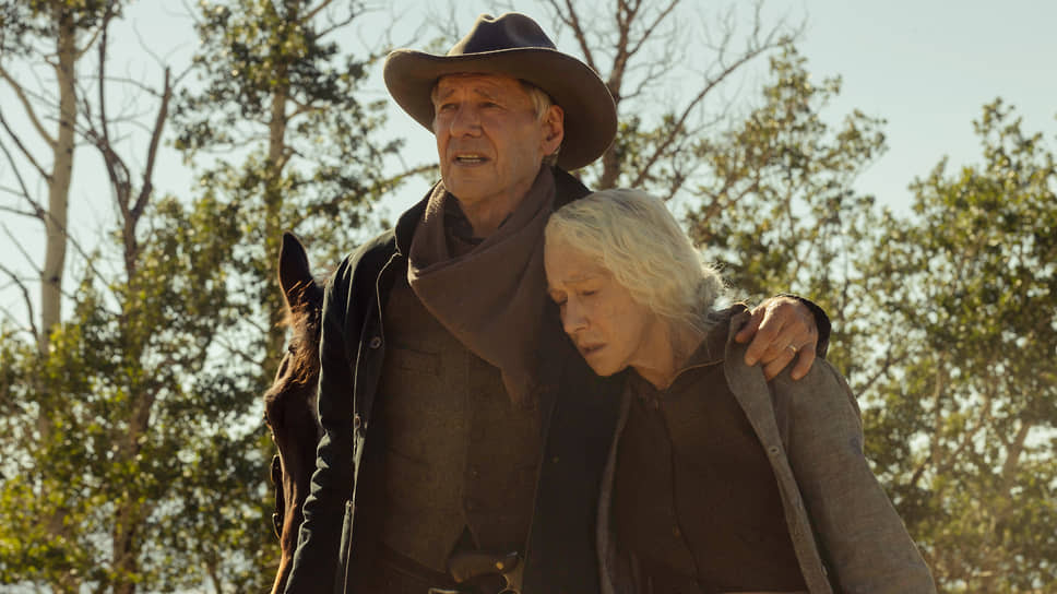 В первой сцене нового вестерна Тейлора Шеридана суровая Кара Даттон (Хелен Миррен) наставляет ружье на лежащего на земле мужика в ковбойской шляпе, тот молит о пощаде, одной рукой пытаясь нащупать оброненный пистолет, судорожно заряжает, пока ее ружье дает осечку… но она успевает выстрелить первой. «Насилие всегда преследовало нашу семью. Оно шло за нами с шотландских гор и из трущоб Дублина. А там, где его не было, мы сами искали его»,— говорит за кадром женский голос, принадлежащий уже другой героине из Даттонов, Эльзе (ее история рассказана в предыдущей части саги о Даттонах — сериале «1883»).