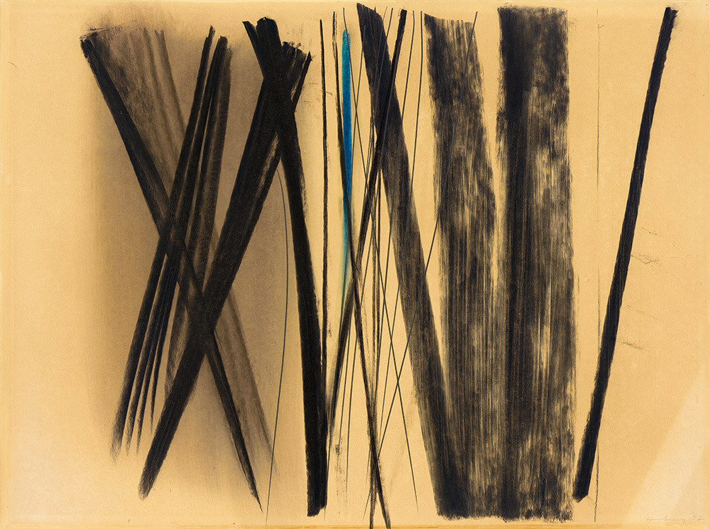 Карьера Хартунга в Париже до войны, при всех его дружеских и семейных (он был женат на дочери Хулио Гонсалеса) связях, не складывалась — ценителей живописи жеста за двадцать лет до Поллока почти не находилось. В середине 1930-х он даже сделал попытку вернуться в Германию, но, оказавшись в гестапо, быстро осознал, что разногласия с режимом у него не только эстетические. В 1939-м Хартунг вступит в Иностранный легион, будет воевать в Северной Африке и на востоке Франции, потеряет ногу — ранение, гангрена, ампутация, нагноение, вторая ампутация, протез и костыли. В 1945-м вернется в Париж героем — героем войны и героем нового, жаждущего обновления искусства, которое вдруг обратит внимание на всех довоенных неудачников вроде Жана Дюбюффе или Жана Фотрие. Переживет и славу, и забвение, и вторую славу — сегодня, когда в академическую моду вошли trauma studies, исследования травмы, жест Хартунга, похожий на удар хлыста и на оставленную им рану, воспринимается в контексте его военного опыта.