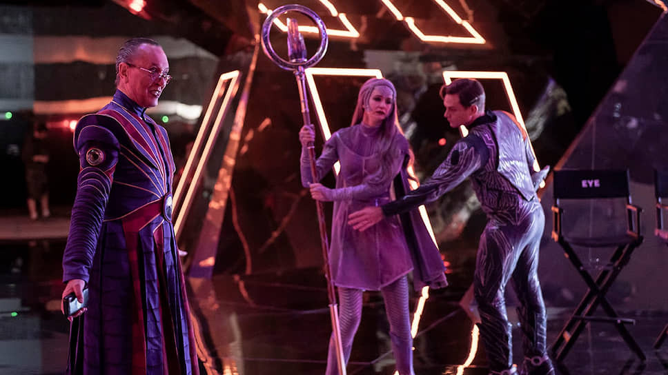 Примерно так интересующиеся супергеройским жанром зрители, по-видимому, и представляли себе изнанку Голливуда: зеленые экраны, на фоне которых разыгрываются дурацкие сюжеты, отбойный молоток Тора, то есть, простите, Текто — невидимый! Плюс «режиссер-визионер из Европы» Эрик (Даниэль Брюль) с выкрученными студией руками, плюс продюсерский произвол в лице представителя студии Пэта (Даррен Голдштейн), минус массовка, которую все время сокращают из экономии. Про Пэта всем известно, что он просто надсмотрщик: «Ни для кого не секрет, что у меня нет
