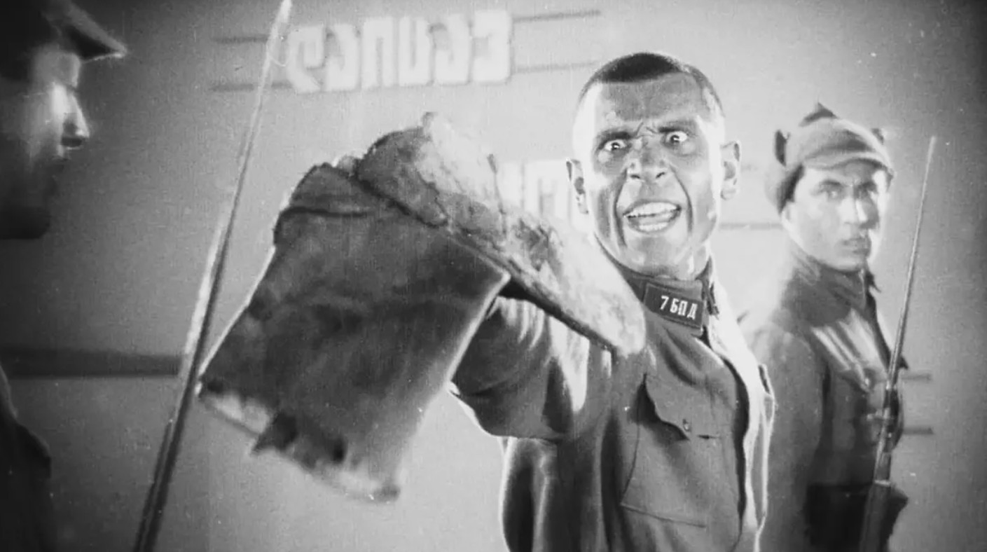 «Соль Сванетии» (1930), первый великий фильм Калатозова, родился из неудавшейся драмы «Слепая», которую запретили «за формализм» и съемок быта сванов, сделанных в Ушкуле, поселении, практически отрезанном от «нижнего» мира. Виктор Шкловский рассказывал, что картина была слишком насыщенной, «как соляной раствор»: «Мы сели и вклеили в нее куски какого-то спокойного фильма». «Соль Сванетии» считается документально-художественным, но на деле это мифологическое кино, в котором племенные традиции неотличимы от поэтического преувеличения. Мужчины здесь бросаются в могилу на чужих похоронах, или долго и мучительно откалывают от скалы плиты, чтобы покрыть крышу, или загоняют лошадь, пока у нее не разорвется сердце, а женщины отказываются рожать, потому что рождение — это проклятие, и, оплакав смерть новорожденного, они кормят своим молоком землю. Это мир, в котором животным не хватает соли, людям — воды, земле не хватает дорог, а средневековью — революции. Следующая его пропагандистская притча «Гвоздь в сапоге» (1931) была не только раскритикована за формализм, но и положена на полку на многие годы. В ней бойца судят за то, что не привел вовремя подмогу команде бронепоезда и вся команда погибла. Не сразу выясняется, что погибшая команда как раз и судит бойца: на самом деле это были учебные маневры. Но боец оправдывается: виноваты бракоделы, пошившие его сапоги,— он поранил ногу и не мог идти быстрее. «Погибшая» команда бронепоезда как раз из этих обувщиков и состоит, выходит, они своей плохой работой «убили» сами себя. Страшный эпизод, когда виновными признают себя и судьи, и подсудимый, и «мертвые», и живые, предвосхищает все тридцатые годы.