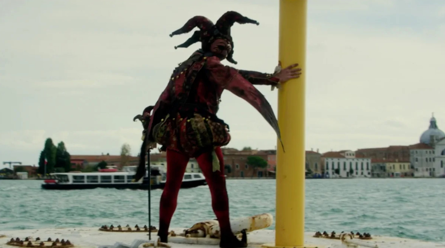 Проблема беспробудного туризма и круизных судов, которые распугивают дельфинов в лагуне, действительно стоит перед Венецией достаточно остро, однако лишь Алексу де ла Иглесиа пришло в голову попытаться решить ее столь диким образом — натравить на горе-путешественников двух героев в костюмах и масках: один является в пышном облачении Чумного доктора, другой — в бубенцах уродливого шута Риголетто. Они действуют в общественных интересах: заманивают особо буйных на дискотеки, опаивают наркотическими коктейлями, похищают и увозят в казематы далекого острова Повелья, который когда-то был отдан под карантинную зону для иностранных моряков, а потом служил психиатрической больницей. С недавних пор Повелья принимает VR-программу Венецианского кинофестиваля, где кинокритики и прочие его участники погружаются в новые технологии. Отчего-то кажется, что именно пребывание на старейшем кинофестивале мира подтолкнуло Алекса де ла Иглесиа к идее создать свою вариацию на тему смерти в Венеции — то ли слэшер, то ли джалло, то ли глумливый травелог в духе «Хостела». А что вы хотели от автора «Печальной баллады для трубы»?