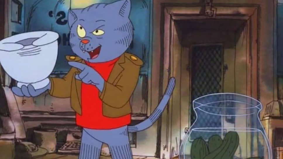 «Девять жизней» вышли в 1974-м, а до того, в 1972-м, были «Приключения кота Фрица». И вот там — полный набор: хиппи, свободная любовь, не особенно плавно переходящая в дикие оргии, полиция, погони, леваки-террористы, мечтающие покончить с миром безудержной эксплуатации... «Приключения» — режиссерский дебют Ральфа Бакши, который до того пробовал себя как мультипликатор, делал рекламные ролики для Coca-Cola и жил припеваючи, а потом вдруг осознал, что не очень ловко жить припеваючи, когда твоя страна ведет бессмысленную и несправедливую войну на далеких берегах, да и внутри твоей страны справедливости не очень много. К тому же Бакши наткнулся на комиксы Роберта Крамба про кота Фрица — жесткая графика и еще более жесткая социальная сатира.