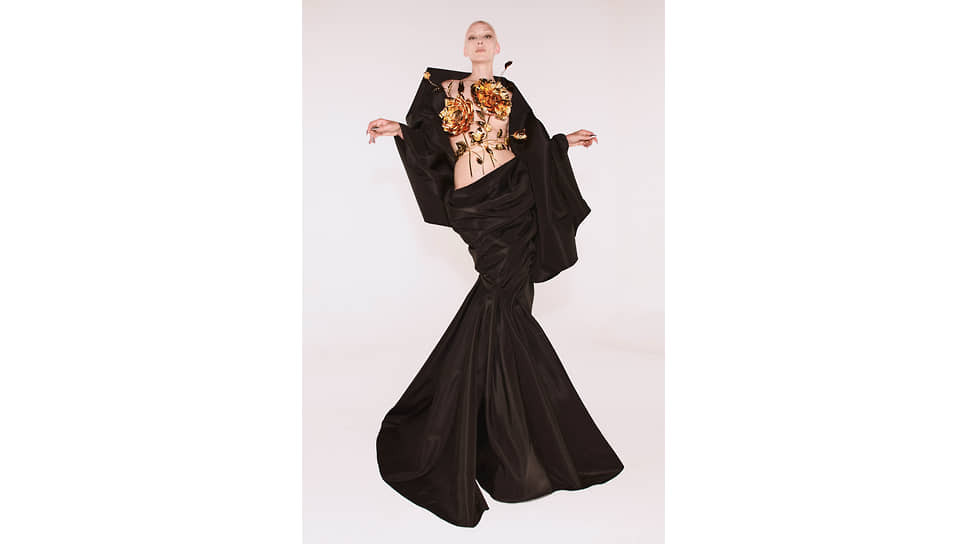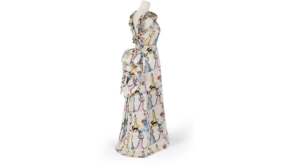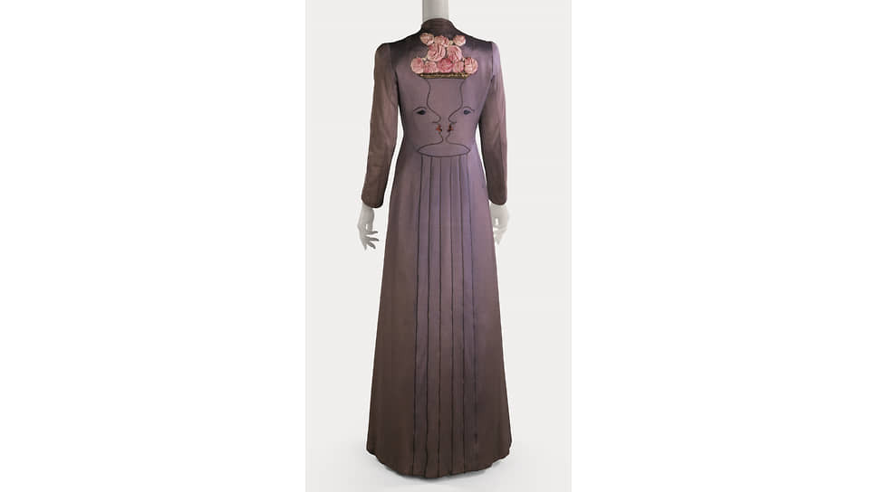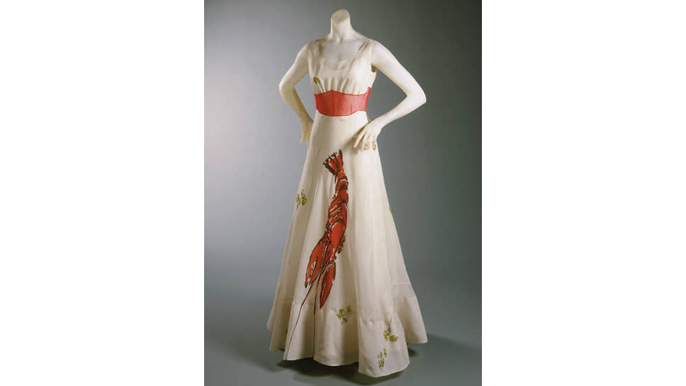 Это простого силуэта платье, и омар на подоле с рисунка Дали вовсе не выглядит натуралистично или провокационно. Провокацию создает актуальный художественный контекст. На выставке рядом с платьем висит «Минотавр» того же Дали, где омар (куда более, кстати, натуралистичный) вылезает из живота самки минотавра. Трактовку сюрреалистической интерпретации платья дает в каталоге выставки Жан-Луи Гельмен, исследователь дизайна и декоративных искусств: омар расположен на подоле так, будто появляется из живота женщины. (И надевшая это платье для съемки в Vogue Уоллис Симпсон, будущая герцогиня Виндзорская, не могла не понимать этого пугающего и эротического подтекста.) Так Скьяпарелли переводит язык сюрреалистического искусства на язык сюрреалистической моды, так работает ее собственный сюрреализм: строгая простота силуэта — острота, неожиданность и глубина ассоциаций, вызванных деталями.