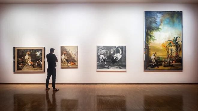 Впрочем, может быть, она никогда не выходила из крутого виража, просто каждая чужая война вдали, а своя — вблизи, и хотя эту нехитрую мысль пытается донести до аудитории любой антивоенный текст и любое антивоенное произведение, аудитория, подтверждая точность нехитрых мыслей, начинает понимать смысл послания, лишь когда рванет прямо под боком. Несколько залов — и зритель оказывается перед другим видео, в отличие от «Побережья», беззвучным. В кадре — старенькая «Волга» посреди осеннего поля где-то в горах: к ней со всех сторон, появляясь тут и там из холодного тумана, устремляются люди, мужчины, женщины, старики, дети,— за четыре минуты экранного времени в готовый развалиться автомобиль каким-то чудом набивается несколько дюжин человек. «Волга» чеченского художника Аслана Гойсума была снята в 2015 году — для кого-то чеченские войны остались в прошлом, для кого-то они всегда оставались вдали, только не для художника, родившегося в Грозном в 1991-м и проведшего все детство в лагерях беженцев. Рядом с «Волгой» висит тонкий, гармонирующий с видео по осеннему колориту экспрессионистский пейзаж: большой крестьянский двор на краю деревни, множество кибиток, лошади распряжены, люди греются у костра. Никакой цыганской экзотики — «Пейзаж с беженцами» австрийского художника Карла Йирака (1897–1982) был написан после 1945 года и отражает личный опыт живописца: Йирак родился в Оплотнице, в Нижней Штирии,— после Первой мировой войны эти земли отошли