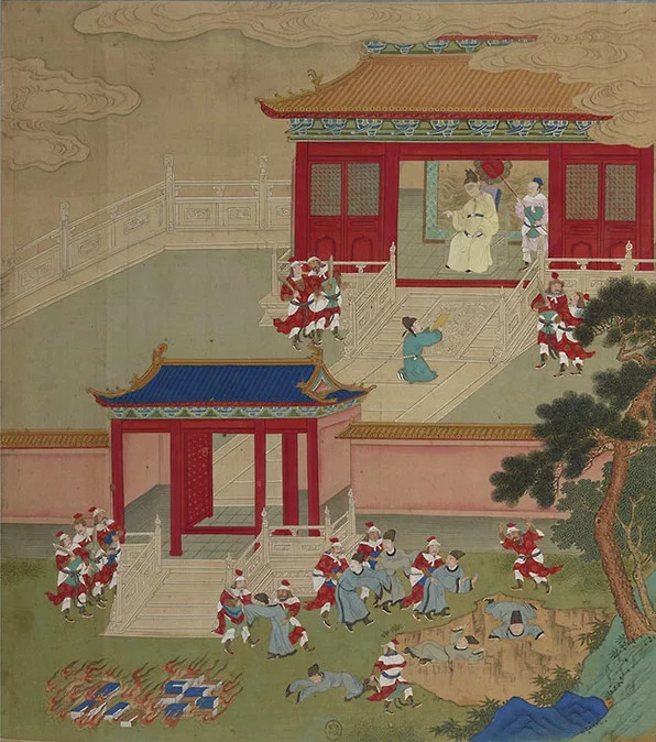 213 год до н. э.: император Цинь Шихуанди сжигает книги, чтобы завершить объединение Китая