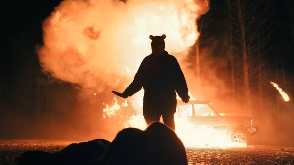 Поначалу в интернете радостно хихикали. Жесткий хоррор с персонажами Алана Милна? Дайте два (кстати, продолжение «Крови и меда» уже заявлено). Промокадры тоже обещали безудержное веселье: безобразные гримасы Винни и Пятака (sic!), похожие на маску из карпентеровского «Хэллоуина», идеально вписывались в привычные для жанра виды. Мрачный лес, заброшенный сарай, бассейн с подсветкой, окно за спинами полуобнаженных дев. Да, хоррор за полвека несколько изменился, но это же лишь хай-концепт: слэшер плюс любимый мишка многих поколений. Disney вам такого никогда бы не показал, а раз с 1 января 2022-го Винни-Пух и все-все-все оказались в статусе общественного достояния — то есть ярмо авторского права на наследии Милна больше не значится,— то почему бы и нет.