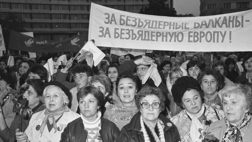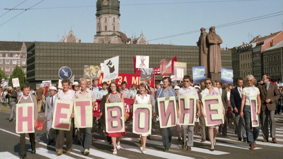 Если смотреть на мир через советские линзы, у обостряющегося в 1983 году конфликта есть одна сторона — Соединенные Штаты. Это они взвинчивают темп гонки вооружений, придвигают ракеты к нашим границам и мечтают сжечь мир в ядерном огне. Это они грезят войной, а мы стоим за дело мира: всем народом, от кремлевских руководителей, выдвигающих новые мирные инициативы, до обычных людей, перечисляющих зарплату в фонд мира. Вместе с нами, плечом к плечу, все люди доброй воли на всех континентах: журналисты-международники умеют представить дело так, что даже искренний порыв антивоенных активистов в Западной Европе выглядит чем-то вроде партсобрания в актовом зале, куда сгоняют после работы. На заднике, за президиумом,— выцветший плакат «Миру мир».