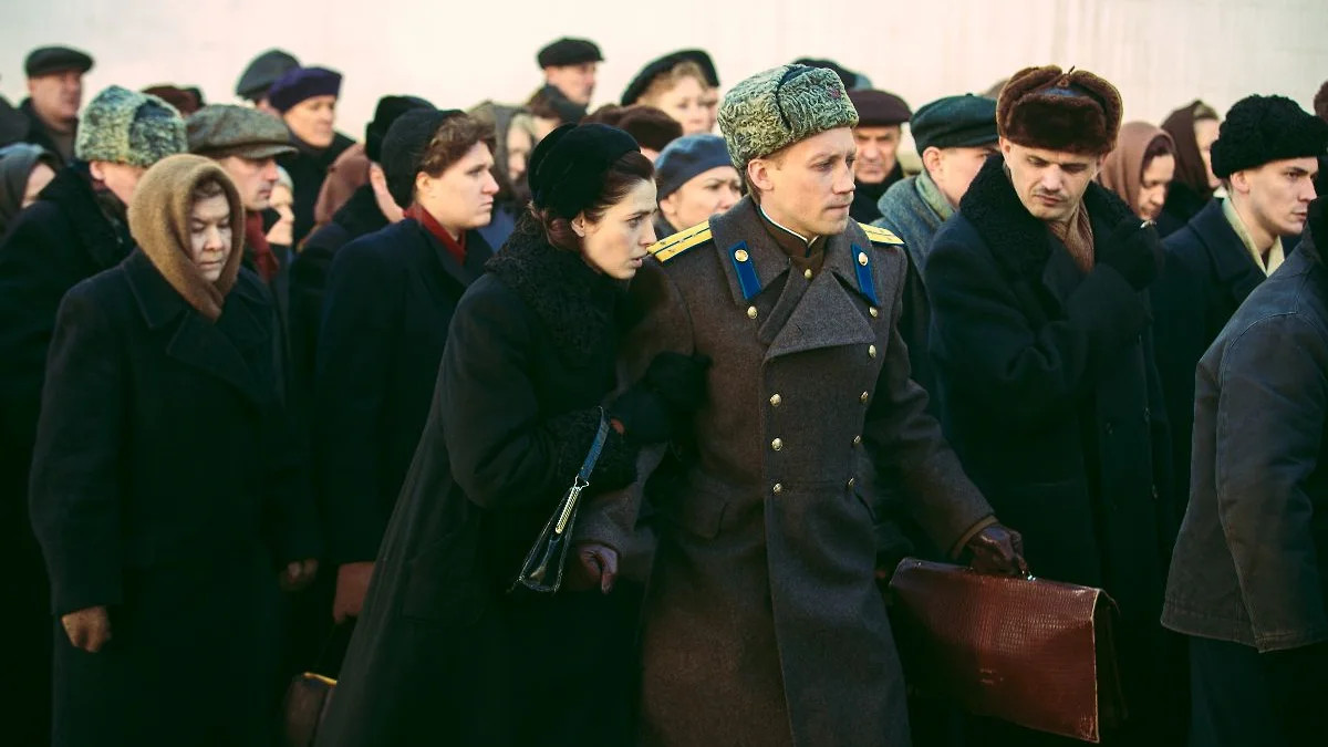 Семья московских интеллигентов Петкевичей (дедушка Павел Казимирович — университетский профессор философии, бабушка Ангелина Федоровна — из бывших, мама Дина работает редактором, папа Боря — инженер) тесно, но по послевоенным меркам благополучно живет в коммунальной квартире домохозяйств на шесть. Помимо светлой комнаты с эркером у них есть своя конфорка на плите, и зарплаты хватает, чтобы починить радио, купить отрез ткани на штаны, а продукты взять на рынке. И в шкафах, помимо опасной дедушкиной рукописи про Гуссерля как предтечу экзистенциализма, можно при желании обнаружить что-то на продажу. Да что там! Зять Боря, как член партии и метростроевец, даже мечтает об отдельной двухкомнатной квартире, терпя мрачное антисоветское ворчание тестя и не замечая развернувшуюся кампанию по борьбе с безродными космополитами и врачами-убийцами. На календаре вот-вот появится число 1953, и в гости к Петкевичам придут коллега Дины из редакции Зина (Ксения Раппопорт) с мужем — он умеет играть на саксофоне «Серенаду солнечной долины». Будут советское шампанское, салат оливье, икра, холодец и ночной стук в дверь. Заберут самого старшего — профессора Петкевича (Андрей Смоляков), и все большое семейство мгновенно превратится в руину. Следующим заберут врача-еврея (Леонид Ярмольник), но скоро весна. И это знание, безусловно, помогает зрителю пережить все, что приключится с героями.