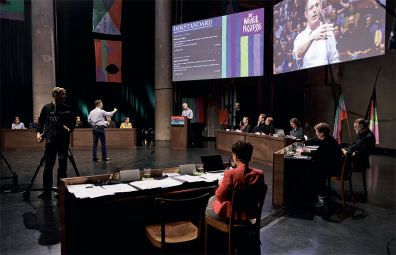 За «Московскими процессами» последовали другие «юстиц-спектакли»: на «Цюрихских процессах» (2013) судили рупор правой швейцарской публицистики, на «Трибунале Конго» (2015) пересматривались события одной из самых кровавых войн современности. На «Венских процессах», по длительности равнявшихся московскому, цюрихскому и конголезскому спектаклям, вместе взятым, к ответу, в сущности, призывалась Австрийская Республика как модель европейской демократии: перед судом, драматургия которого отталкивалась от совокупности судебных разбирательств, политических дебатов и журналистских расследований последних лет, предстали правительство, правопопулистская партия и гражданское общество. Первый уикенд был посвящен разбору мер, принятых австрийским правительством во время пандемии COVID-19, второй — Австрийской партии свободы (FPO), третий — разного рода активистам: из климатического движения «Последнее поколение», устроителям пропалестинских протестов и, собственно, активистским Wiener Festwochen 2024 года.