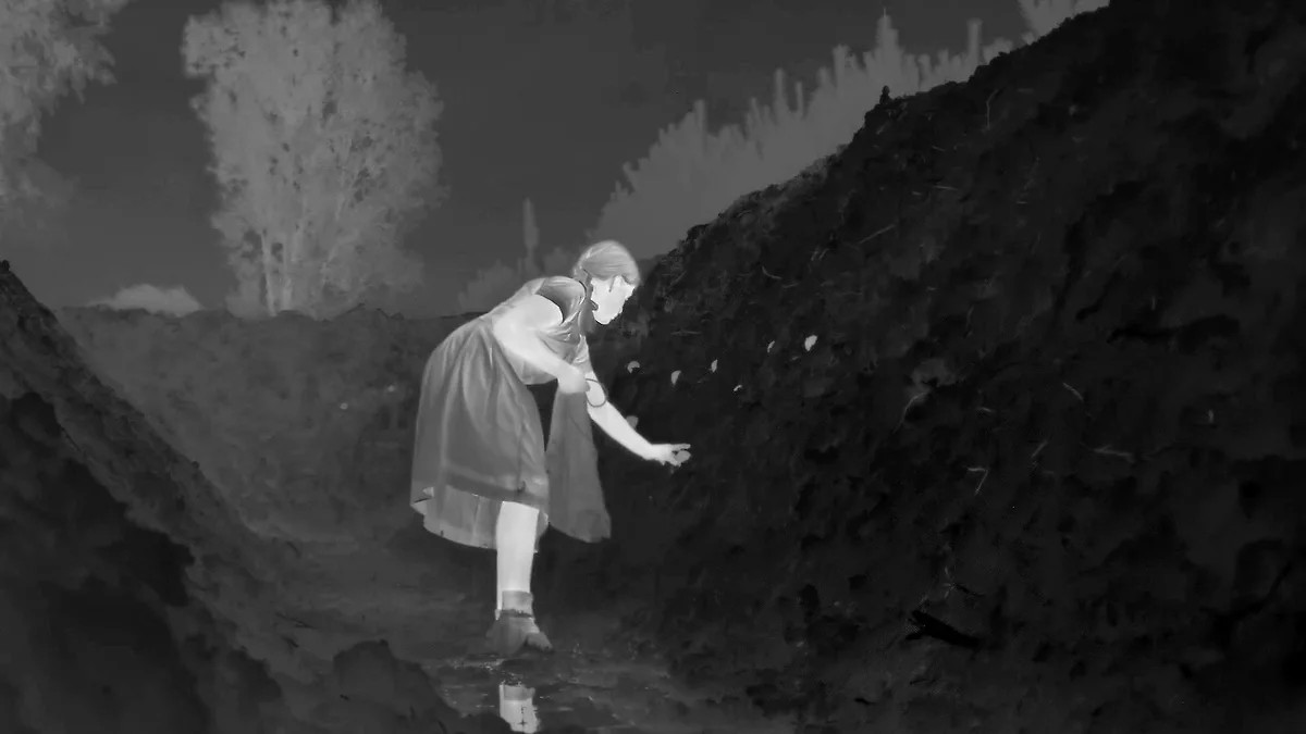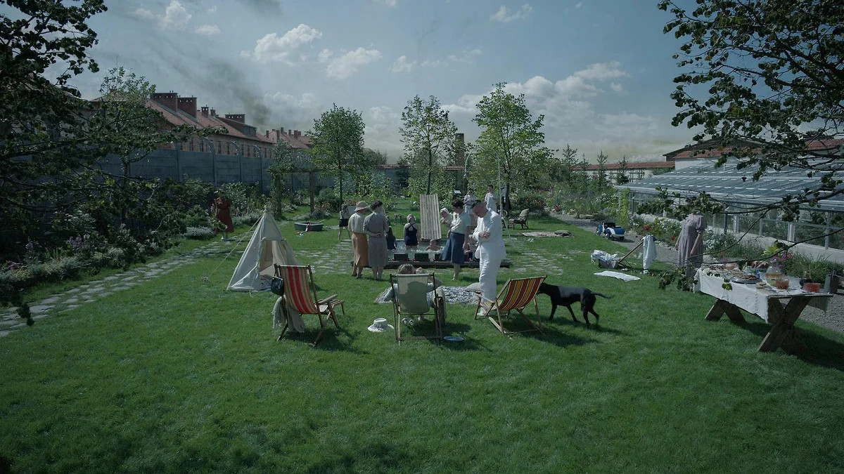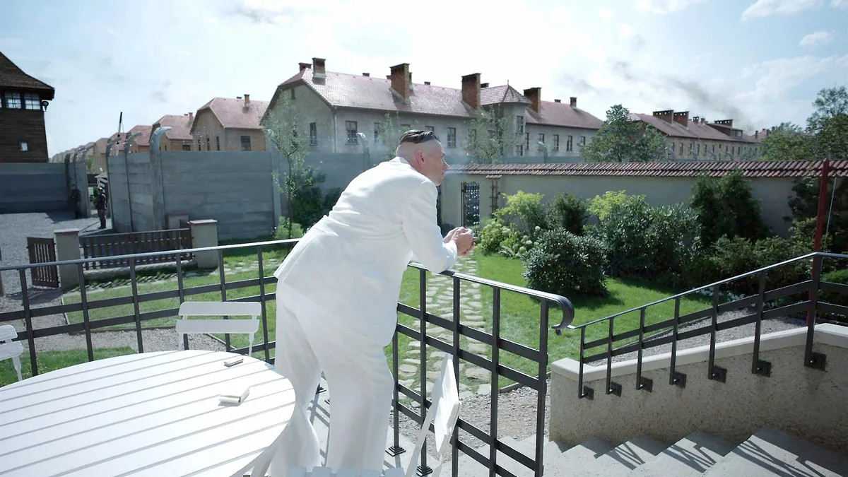 Фильм британца Джонатана Глейзера «Зона интересов» рассказывает о семье коменданта Аушвица Рудольфа Хесса, который со своей женой Хедвиг и с пятью детьми жил прямо у стены лагеря. Дом был соединен с лагерем подземным коридором. Существует серия фотографий, снятых Хессом, на которых видны безмятежные игры его детей, прием гостей, Хедвиг в саду. Единственное, чего на этих фотографиях нет,— стены между садом и Аушвицем. Глейзер намеренно поворачивает камеру так, что эта стена видна почти постоянно.