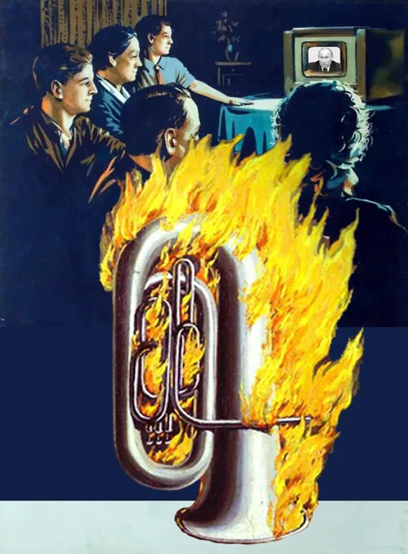 Мне очень жаль, что на вашей выставке нельзя увидеть работ с нецензурной лексикой, в которых официальный казенный язык сталкивается с живым народным: нет «Частушек», где поверх советского агитплаката пущены советские же матерные частушки, нет «Заветных сказок», где русские народные «сказки для взрослых», собранные Афанасьевым, проиллюстрированы в палехской манере. Понятно, что после «закона о мате» это не может быть выставлено.