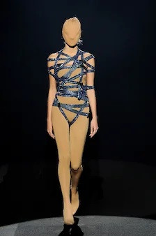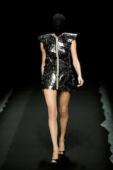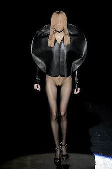 Весна-лето 2009 года станет юбилейной, 40-й коллекцией, отметившей 20-летие Maison Martin Margiela,— и последней, сделанной Мартином Марджелой. И это придаст ей некоторый символический смысл. Марджела в ней покажет абсолютно узнаваемые свои предметы — узкие плечи-сигареты с приподнятым окатом рукава, с которых он начинал в 90-е, прямые широкие плечи, на которые он перешел в начале 2000-х, телесные боди с плечами-крылышками, топы из пластиковых пакетов, шубы из волос и т. д. И эти вещи он наденет или на голое тело, или на телесные трико, или сами по себе, как, например, боди,— только обозначив верхнюю одежду куском красной ткани, накинутой сверху и покрывающей лицо модели, или синей лентой, обмотанной вокруг ее корпуса. Такого количества верха без всякого низа — причем вполне институционального верха — не было до того, пожалуй, ни в одной из других коллекций Марджелы.