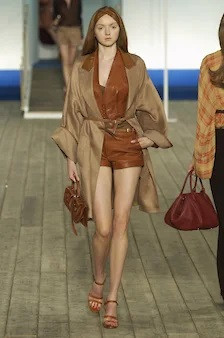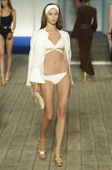 Коллекция Hermes SS 07 будет одной из самых запоминающихся коллекций времен Готье. Благородного шоколадного цвета платья из джерси с несколько раз обвивающими талию кожаными поясами и кожаными застежками, кожаные курточки и жилеты с перекрещивающимися на груди полочками и перекрученными за спиной ремешками, застегнутыми впереди на талии, длинные многослойные летящие платья, и хайлайт коллекции — желтое шифоновое платье с той самой курточкой, смотревшее с каждой глянцевой обложки. Мини-шорты под длинными платьями, открывающими впереди ноги, и купальники, много очень элегантных, очень по-эрмесовски красивых купальников. Их Готье соединит с платьями-халатами, брюками, но вдруг среди всего этого вполне привычного пляжного шика мелькнет пиджак — вполне формальный, с четкой линией плеч, прямой длинный черный пиджак, чуть ли не деловой. И больше ничего — только босоножки на высоченной платформе по тогдашней моде, что создавало вполне головокружительные пропорции. Эти вещи, купальник и пиджак, совершенно из разных функциональных плоскостей, не существуют друг с другом не только в реальной жизни, но не особенно представимы в паре даже на подиуме. Ни в пиджаке, ни в купальнике не было ничего экстраординарного, но вместе они запоминались.