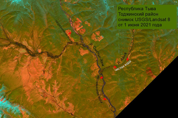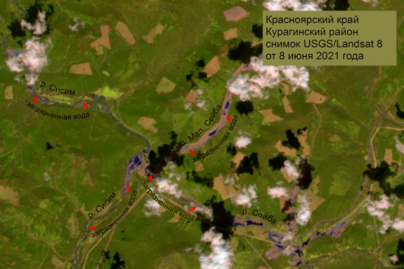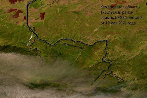 Общая протяженность загрязнения составляет 1474 километра. Эксперты проанализировали спутниковые снимки территорий Красноярского края, Кемеровской области, Тувы и Хакасии.
