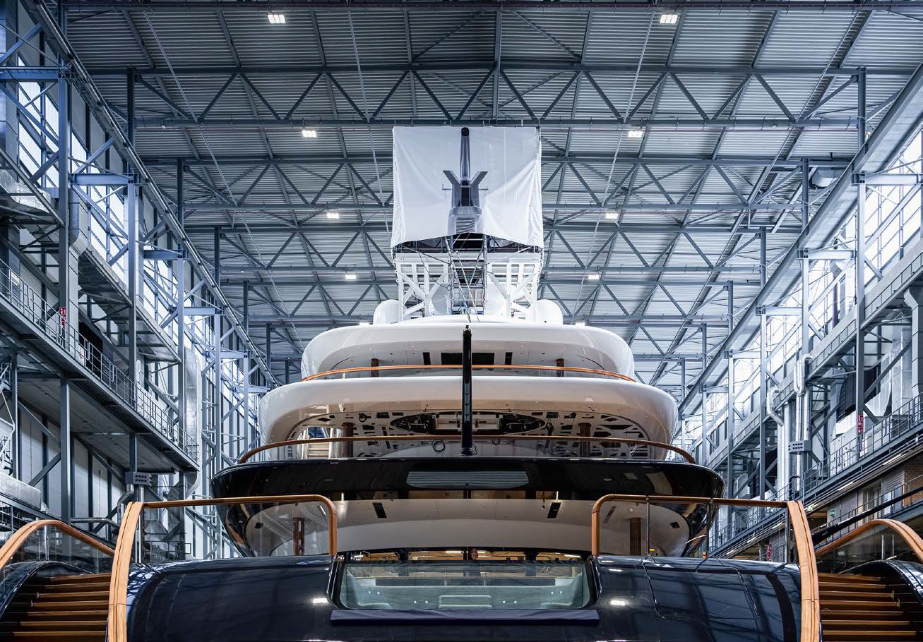 Что касается водородного топлива, использования которого в чистом виде избегает Sanlorenzo, тут пальма первенства, опять же, принадлежит Feadship. В мае 2024 года верфь покинула 119‑метровая яхта, крещенная именем Breakthrough. И это первая в мире суперъяхта, оснащенная водородными топливными элементами. Непростой вопрос хранения водорода на борту на верфи решили, заморозив его до –253 ºС. Сам по себе водород очень легкий: один кубический метр весит 70 кг против 800 кг веса аналогичного объема HVO. Но требования безопасности к системе хранения газа на борту яхты очень строги: необходима криогенная камера с двойными стенками, установленная в специально отведенное под нее помещение. Так получается, что места для хранения должного запаса водорода на борту требуется в 9–10 раз больше, чем для топливных баков, содержащих аналогичный по эффективности запас дизеля.