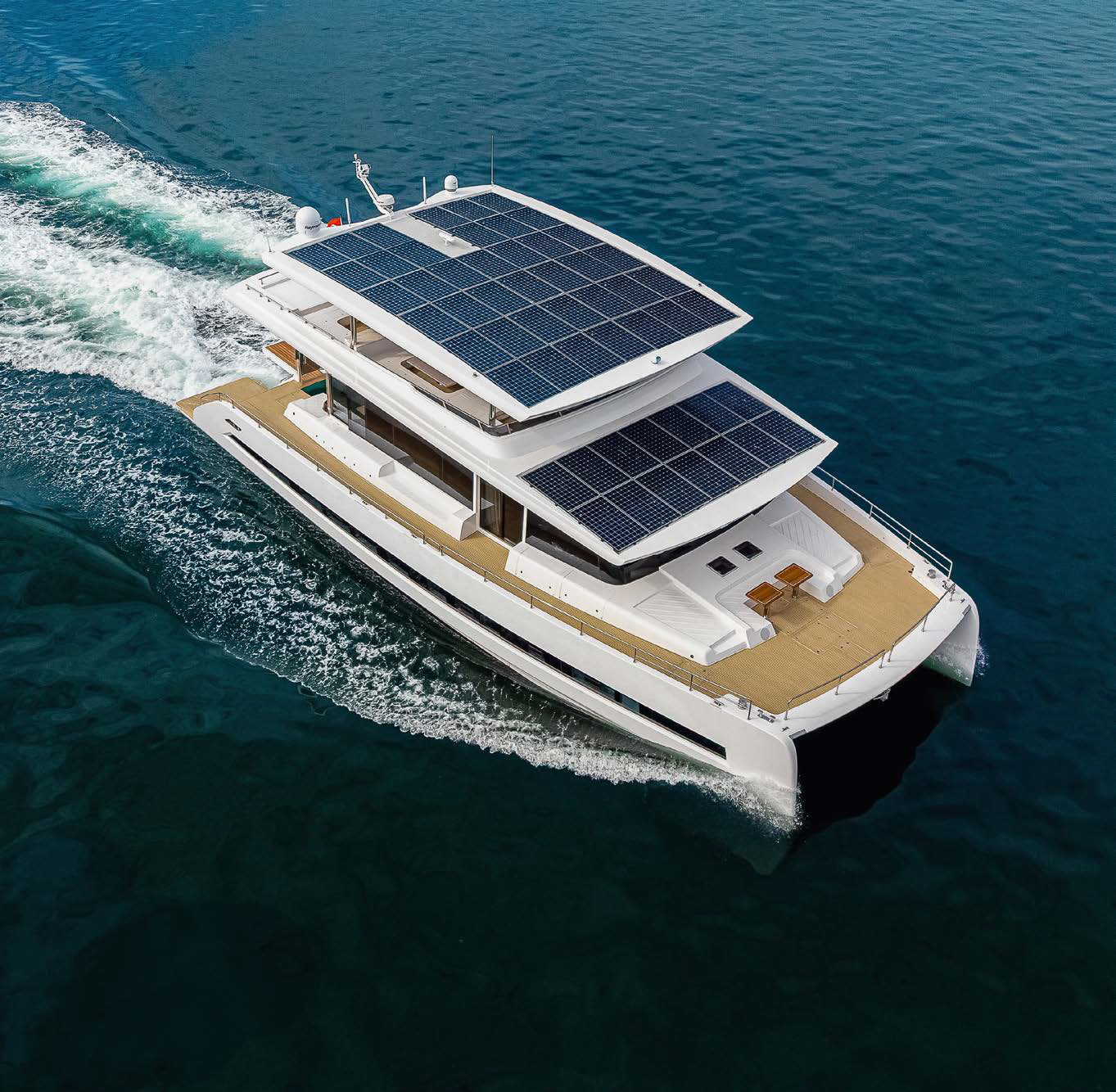 Начну с того, что до этой модели у VisionF Yachts, в портфолио которой есть ряд проектов инновационных моторных катамаранов длиной от 60 до 100 футов, появился катамаран Silent VisionF 82 из алюминиевого сплава. В названиях моделей яхт обычно присутствует упоминание бренда, что позволяет сразу определить производителя. Но в случае Silent VisionF 82 это правило дало сбой: в названии мы видим бренды VisionF и Silent.
