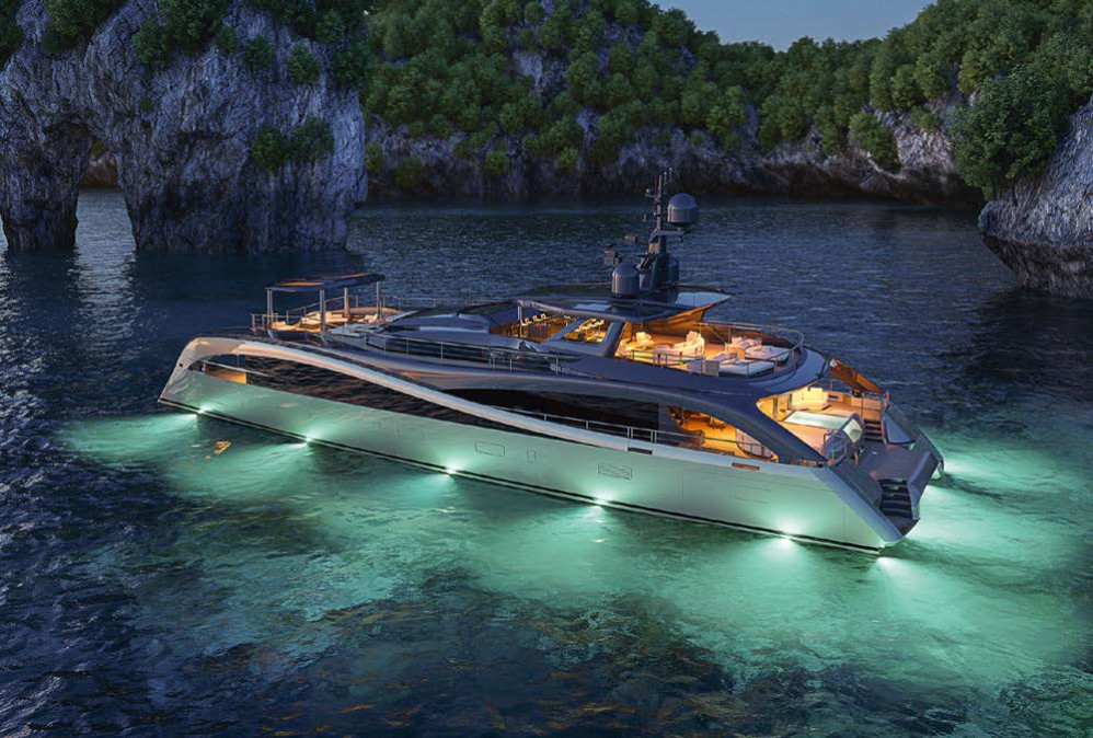 На выставке Monaco Yacht Show в сентябре 2022 года итальянская верфь Rossinavi — один из заслуженных деятелей индустрии суперъяхт — представила проект первого в своей истории катамарана. На презентации также довольно долго рассказывали о новом подходе к строительству яхт, который отныне будут практиковать в компании. В Rossinavi назвали его BluE Label и обещали отмечать им исключительно современные, экономичные и экологичные экземпляры.