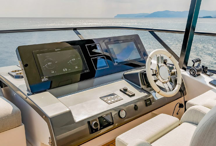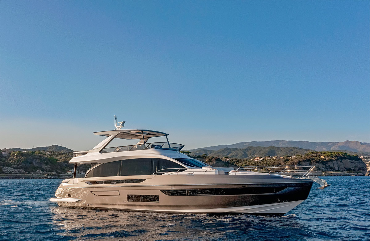 Обновленная модель Azimut Fly 72 — это эффектная моторная яхта с флайбриджем, немаленьким фордеком, с кокпитом и купальной платформой за транцем, просторным салоном и четырьмя каютами на нижней палубе. Все как у многих в этом типоразмере, но со своими особенностями.
