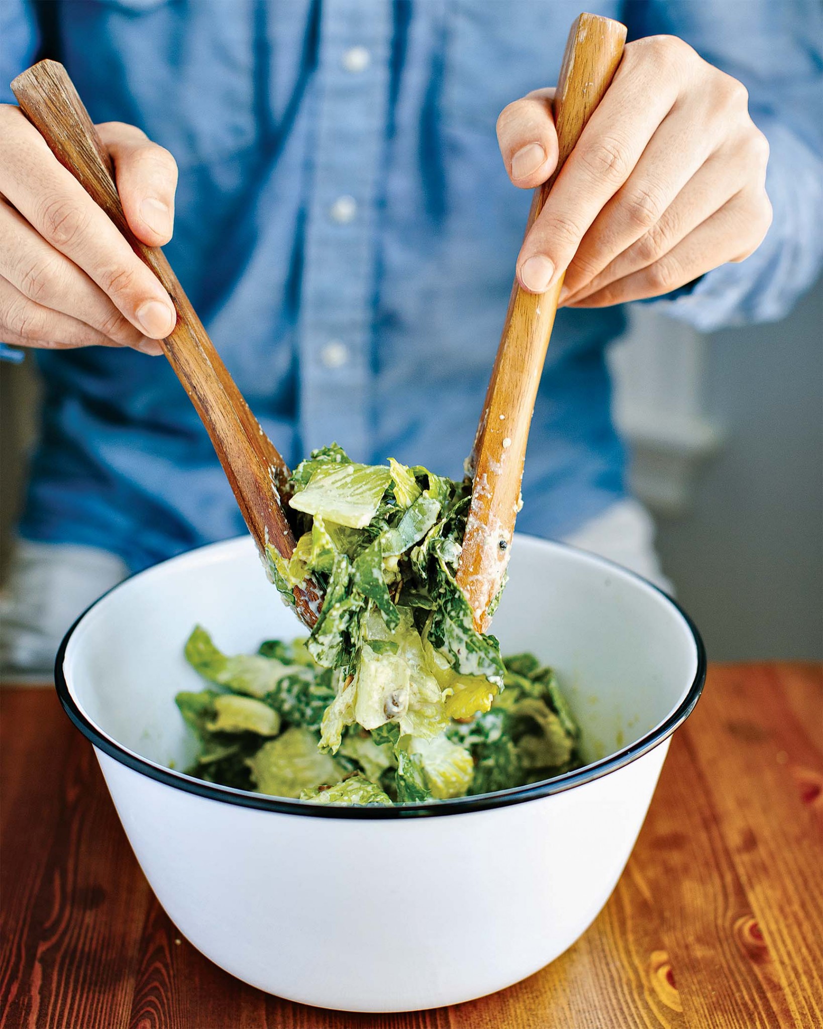 В жару хрустящий салат ромейн — идеальный выбор, ведь листья его содержат много влаги. Но если вы едите много сырых овощей, то недостаток заземления, то есть продуктов, отвечающих за то, чтобы во всех смыслах крепко стоять на ногах, — может привести к тому, что сознание ваше постепенно станет туманным и зыбким. Однако отныне у вас есть идеальный зелёный салат! Очищающие горькие субстанции зелени сбалансированы в нём сладкими, питательными вкусами качественных масел в составе тахини (пасты из кунжутных семян), тыквенных семечек и масла оливы и льна. Подмешайте к этому миксу немного капусты кале, чтобы получить заряд «зелёной» энергии, полейте сливочной заправкой и дайте салату настояться несколько минут, пока вы жарите тыквенные семечки. Посыпьте ими свой салат, пока они не остыли, — чтобы смягчить вкус зелени.