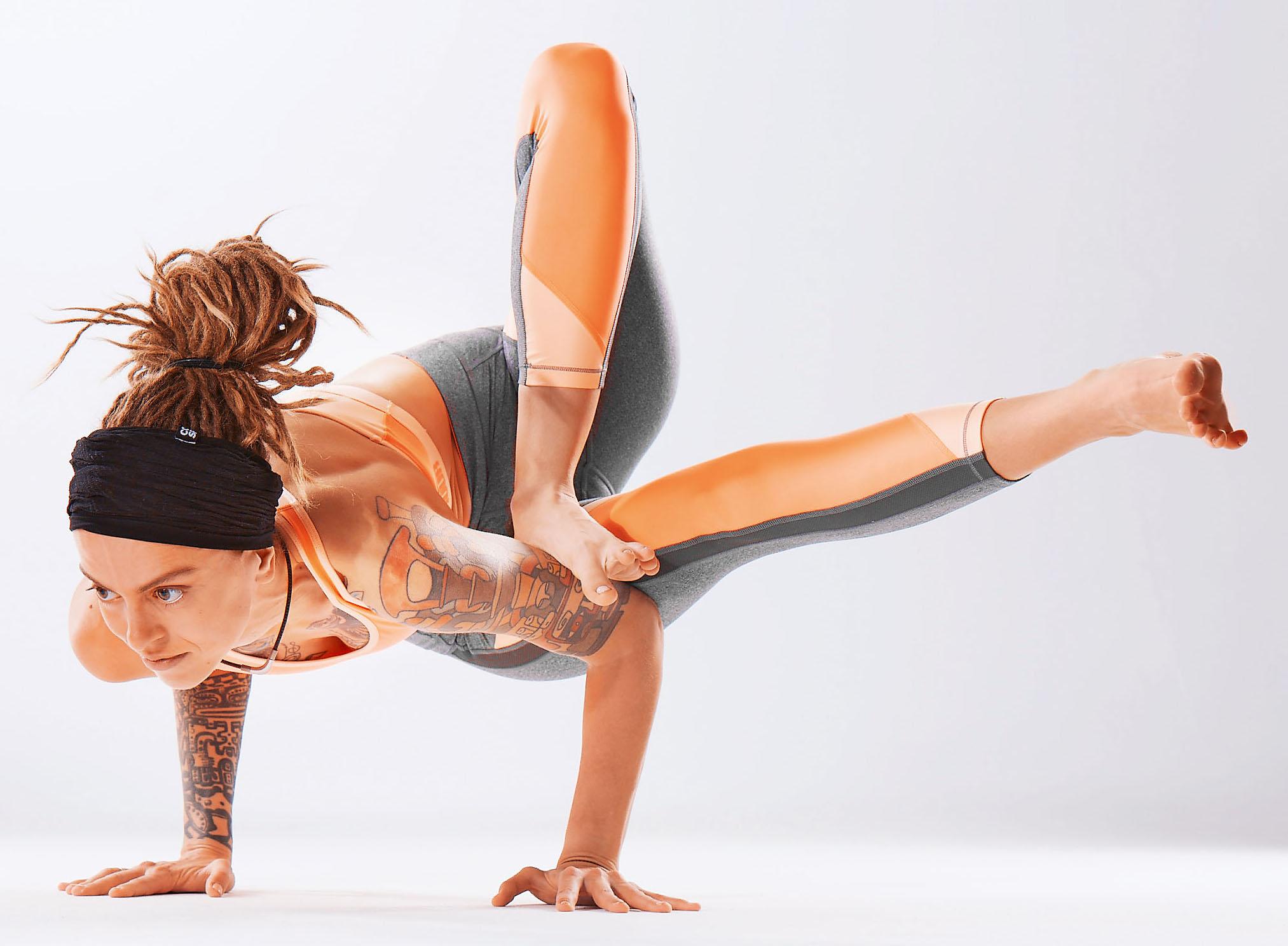 В этой сложной асане развивается устойчивость и чувство равновесия