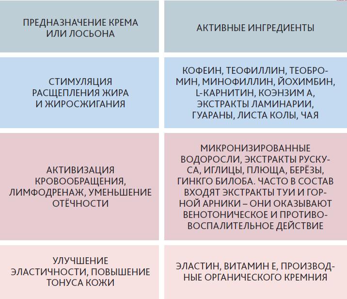Антицеллюлитных кремов и лосьонов на рынке множество. Против III–IV стадий целлюлита, когда неровности кожи уже очень заметны, они бесполезны, но на начальных стадиях правильно подобранные средства дадут хорошо видимый результат.
