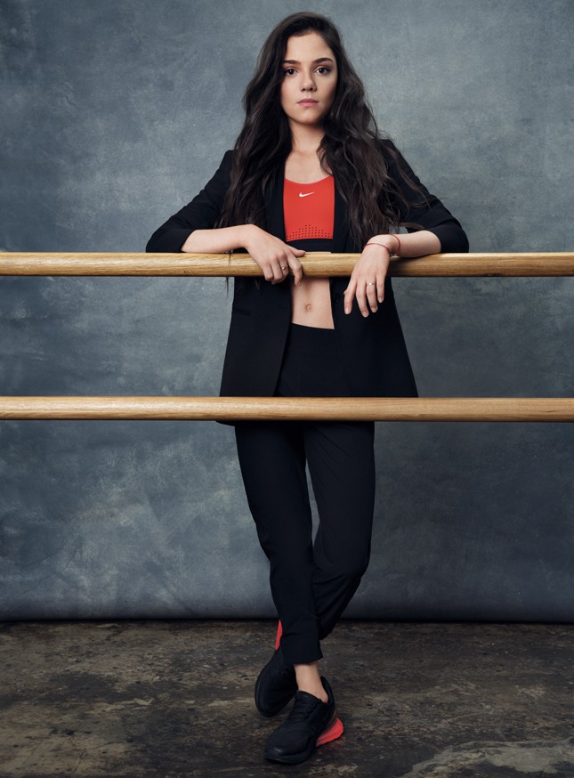На площадке вчерашняя школьница пять часов держит в трепете фотографа, стилиста, продюсера и трех ассистентов. Эта девушка точно знает, что ей идет и как встать в кадре, а вытянутые стрелки рисует заметно увереннее визажиста. Перед каждым выступлением Женя красится только сама, настраивается музыкой k-pop, завязывает коньки только с левой ноги и смело шагает на лед. «Себя я никому не доверяю,