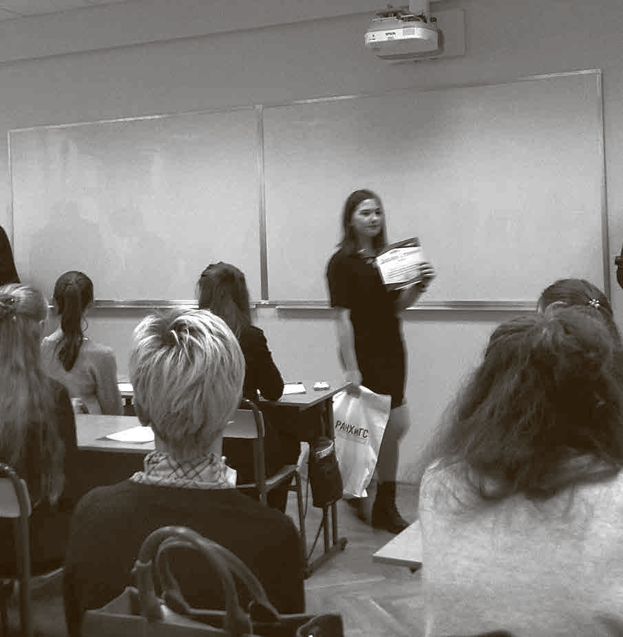 Марианна Сорвина: Безусловно, и один такой случай мне помнится особенно хорошо, потому, что он произошел в первый год моей работы в Предуниверсарии, хотя в самом университете я работаю уже более тридцати лет. В тот год академия РАНХиГС объявила первую научно-практическую конференцию «Newmedia и современная журналистика». Проходила она осенью, 11 ноября 2016 года, и мы едва успели сделать нужные документы, а одну из наших учениц даже не хотели пропускать из-за не совсем по форме сделанного пропуска. И все наши уже прошли, а мы с ней зависли в бюро пропусков. Она нервничала, но все время иронизировала, а я беспрерывно звонила по телефону, чтобы нас пропустили. В общем, мы экстремально попали на конкурс, который являлся частью конференции, и были рады уже тому, что вообще успели и нас пропустили. Но уровень наших учеников оказался настолько высоким, что они заняли весь пьедестал победителей и получили от первого места до третьего. На этой конференции блестяще выступали мои ученицы Полина Жучкова и Олеся Титаева, с которыми я дружу до сих пор. А первое место заняла та самая девочка, которую никак не хотели пропускать на входе, – ученица 10 класса Александра Вириевич. Она прочитала на конкурсе интереснейшую лекцию «К проблеме перевода: сравнение переводов сонета "Аккерманские степи" А. Мицкевича (А. А. Фет и В. Г. Бенедиктов)». Вириевич владела английским, сербским и польским языками и в дальнейшем поступила в Дипломатическую Академию при МИД РФ.