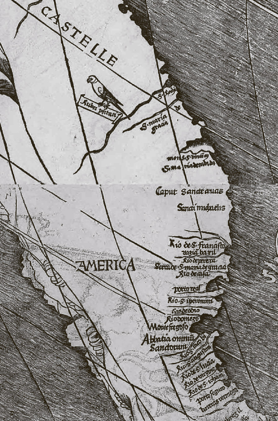 Разумеется, там были указаны и земли, недавно открытые Колумбом. Однако превыше Колумба, лишь доплывшего до этих земель, картограф оценил провидческий дар Америго Веспуччи, который во всеуслышание объявил, что эти острова и области – не часть Индии, а новая часть света.