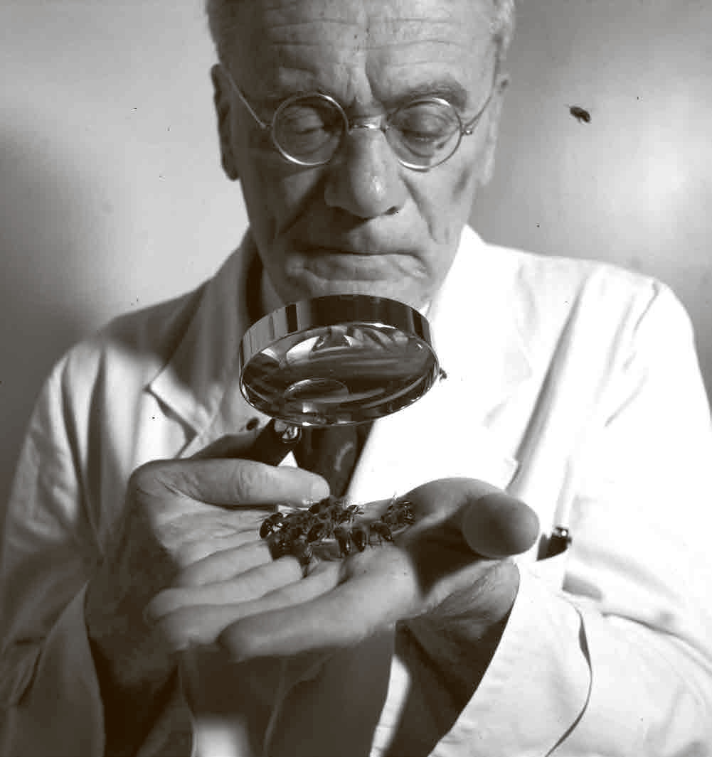 Серией нехитрых экспериментов (кормушку с сиропом ставили на квадрат определенного цвета – и вскоре пчелы стали прилетать на этот квадрат, даже когда на нем не было подкормки, как бы его ни перемещали и ни меняли местами с квадратами других цветов), Фриш вскоре доказал, что пчелы прекрасно различают цвета. Но эта работа поставила перед исследователем ряд новых вопросов. (Забегая вперед, скажем: всю последующую жизнь – а прожил он больше 95 лет – Фриш изучал пчел и только пчел.) Ученый приступил к этим исследованиям, но его работу прервала Первая мировая война. До самого конца ее он работал в военном госпитале близ Вены. Для научной работы эти годы были потеряны, зато там Фриш встретит свою спутницу жизни – художницу Маргарет Мор, работавшую в том же госпитале медсестрой. Они проживут вместе около полувека, и разлучит их только смерть Маргарет в 1964 году.