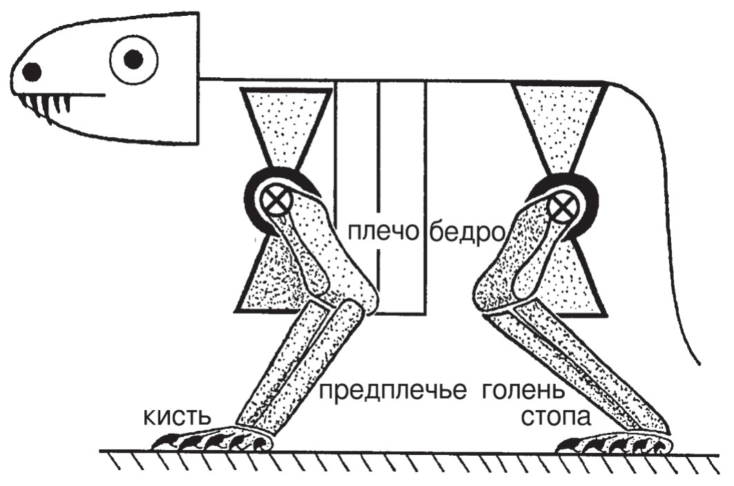 Американский сравнительный анатом Джеффрис Уаймен, напротив, был крайним антитропистом. В 1867 году он выпустил обстоятельную работу, в которой доказывал, что конечности наземных позвоночных полностью построены по антитропическому принципу. Уаймен, конечно, понимал, что лапы – то есть кисти и стопы – направлены в одну сторону. Если бы передняя и задняя лапы смотрели навстречу друг другу, они были бы антагонистами, и животное не смогло бы никуда двигаться. Но Уаймен считал разворот обеих пар лап вперед вторичным признаком, наложившимся на антитропический истинный план строения, проявления которого ему (как он считал) удалось найти у эмбриона человека.
