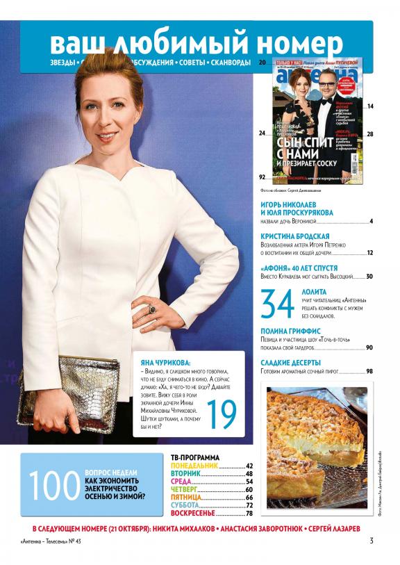 Антенна-Телесемь – это самая удобная телепрограмма, новости из жизни звезд, огромное количество призов для читателей, кроссворды и головоломки, советы по ведению домашнего хозяйства.