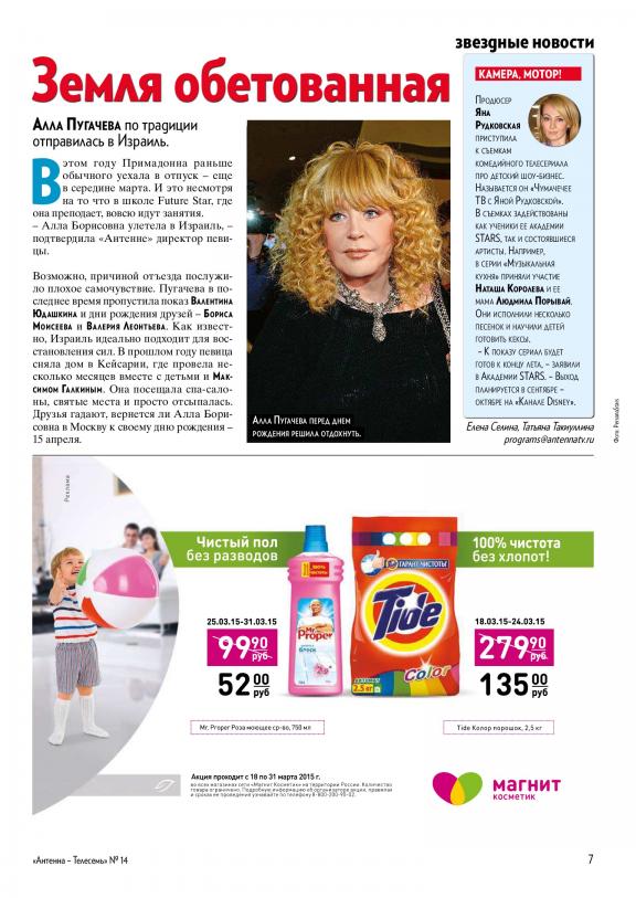 Антенна-Телесемь – это самая удобная телепрограмма, новости из жизни звезд, огромное количество призов для читателей, кроссворды и головоломки, советы по ведению домашнего хозяйства.
