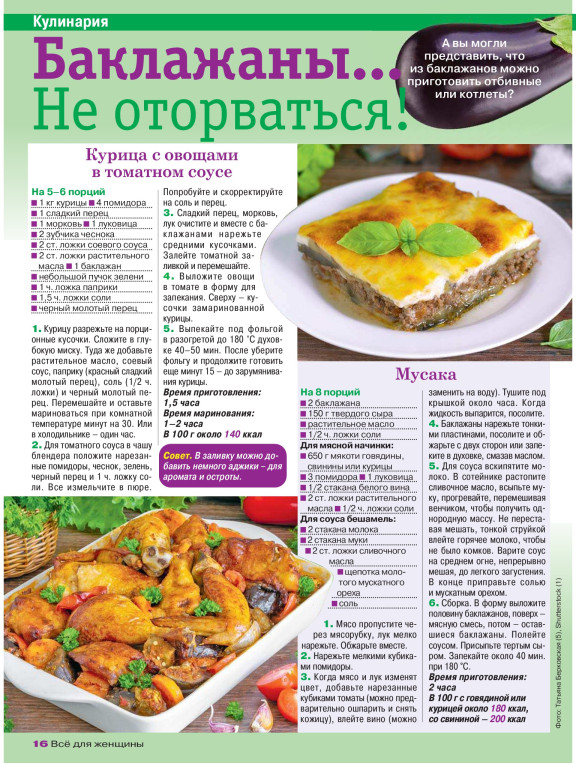 «Все для женщины» — самый популярный прикладной женский журнал, призванный облегчить и украсить жизнь своих читательниц. Дает оригинальные, но простые и актуальные советы по всем сторонам жизни современной женщины. Предлагает читательницам опыт других женщин и лучших экспертов. Журнал вдохновляет женщин, делая их жизнь насыщенной и комфортной. Более 100 идей в каждом номере.