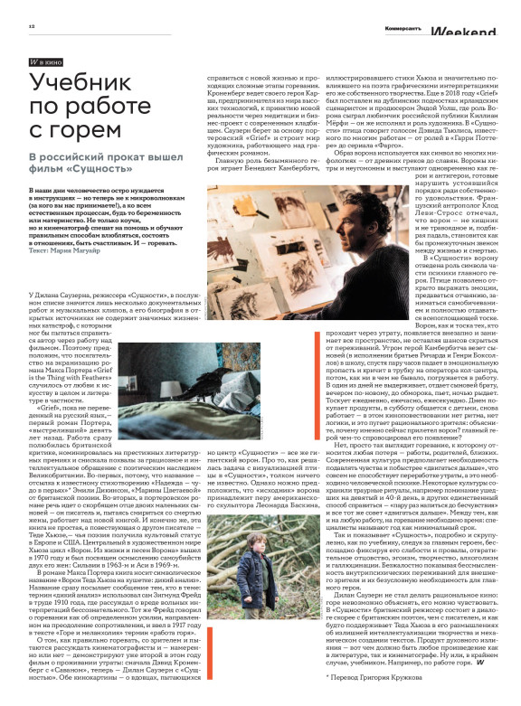 «Коммерсантъ WEEKEND» — еженедельный журнал о стиле жизни. Это всё новое и интересное, анонсы предстоящих выставок и премьер, обзоры магазинов и новых коллекций одежды, а также другая полезная информация о жизни в столице.