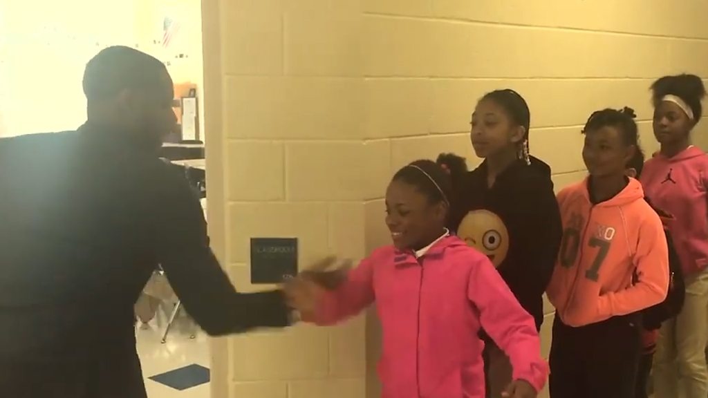 Учитель английского языка Барри Уайт младший (из города Шарлотт, штат Северная Каролина) прославился в интернете необычным способом приветствовать школьников. Для каждого ребенка он придумал персональный набор движений, которые они вместе исполняют в начале дня. Таким образом учитель заряжает своих школьников по утрам.