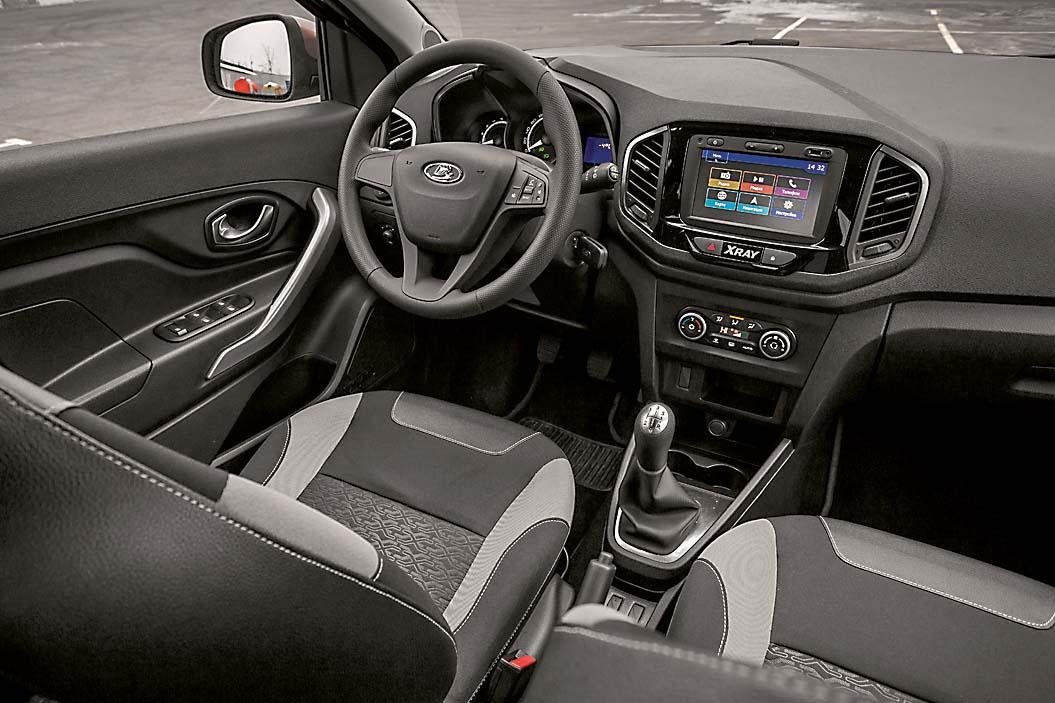 В документах работающего на 95-м бензине Sandero Stepway указана мощность 113 л.с., для Lada допускается топливо Аи-92 (хотя предпочтителен опять же 95-й), сказывается более низкая подоконная линия и более тонкие передние стойки. Проектируя салон XRay, специалисты ВАЗа постарались избавить его от недочетов интерьера Sandero: чтобы водителю было удобнее смотреть на экран медиасистемы, его переставили повыше, потеснив дефлекторы обдува. Рулевое колесо в Lada более изящно, а рычажок «поворотников» снабжен режимом трехкратного мигания – на Renault этой функции нет. Располагает Lada в схожей комплектации датчиками света и дождя. Есть и обогрев лобового стекла – у Renault за эту опцию нужно доплачивать.
