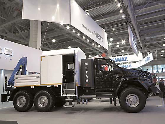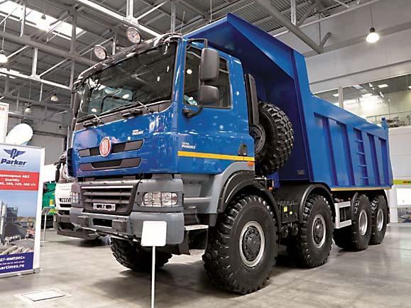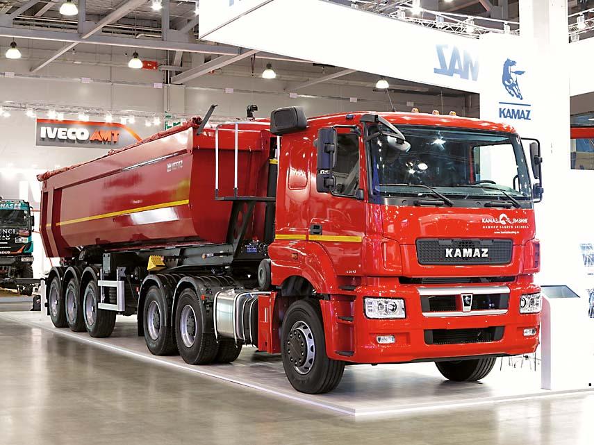 Среди изобилия демонстрировавшихся грузовиков главным экспонатом был автопоезд из седельного тягача с самосвальным полуприцепом из Нефтекамска. Автомобиль оснащен новой комфортабельной кабиной со спальным местом, экономичным 12-литровым турбодизелем MercedesBenz мощностью 428 л.с. Его заявленный ресурс 800 тыс. км. Грузоподъемность полуприцепа 31,5 т, подвеска пневматическая. Максимальная скорость автопоезда с полной массой 74 т составляет 90 км/ч. Впервые был показан и бетоносмеситель с колесной формулой 8х4. Он способен перевозить до 15 т бетонной смеси. Двигатель — турбодизель Cummins мощностью 307 л.с.