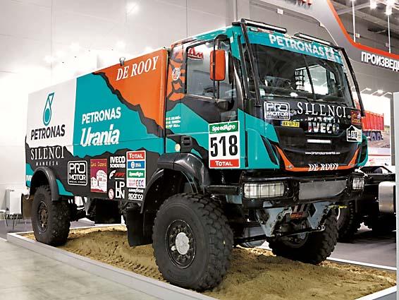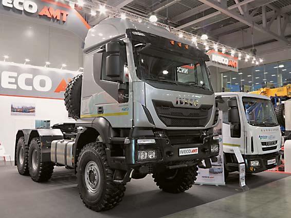 Одной из самых интересных экспозиций оказалась у российского предприятия «ИВЕКО-АМТ». Украшением стенда служил автомобиль-триумфатор Iveco, одержавший победу в ралли «Даккар-2016». Но все же главным экспонатом был полноприводный седельный тягач Trakker мощностью 420 л.с. Он спроектирован для работы в составе автопоезда полной массой 97 т на просторах бескрайней Сибири и Дальнего Востока. Другим тяжеловесом для работы в непростых климатических условиях стал самосвал (8х8). Его грузоподъемность 25 т, мощность двигателя 450 л.с. Кроме того, на базе Iveco Eurocargo были продемонстрированы экскаватор-планировщик (6х6) в газодизельном исполнении и шасси (4х2) с газовым двигателем Natural Power для установки фургонов и коммунальных надстроек.