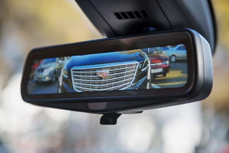 ПОТОКОВОЕ ВИДЕО в зеркале, как и у старшего Escalade. Точно определить расстояние до попутной машины не позволяет. Функция отключаемая.