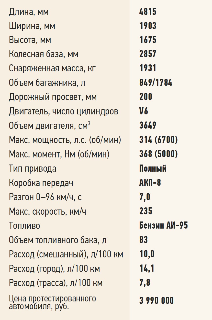 На трассе в тишине – шумоизоляция образцовая – мы оценили, что обещающий длительную эксплуатацию атмосферник V6 умеет экономить. На ходу он отключает пару цилиндров. Электронная «служба безопасности» неназойлива. Где подмигнет, где напомнит легкой вибрацией под пятой точкой. А случись прозевать пешехода, машина и тормознет самостоятельно. С теплотой вспоминается и адаптивный круиз-контроль, который не отключается даже после остановки.