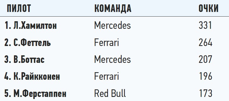 Такое количество ошибок у Феттеля и Ferrari все же не то, что нужно для победы над Mercedes и Льюисом. А он не допускает ошибок и уверенно идет к своему пятому титулу, имея преимущество в 69 очков личного зачета. Увы, после Гран При Японии интрига чемпионата свелась к тому, станет ли Льюис чемпионом уже в США или нет.