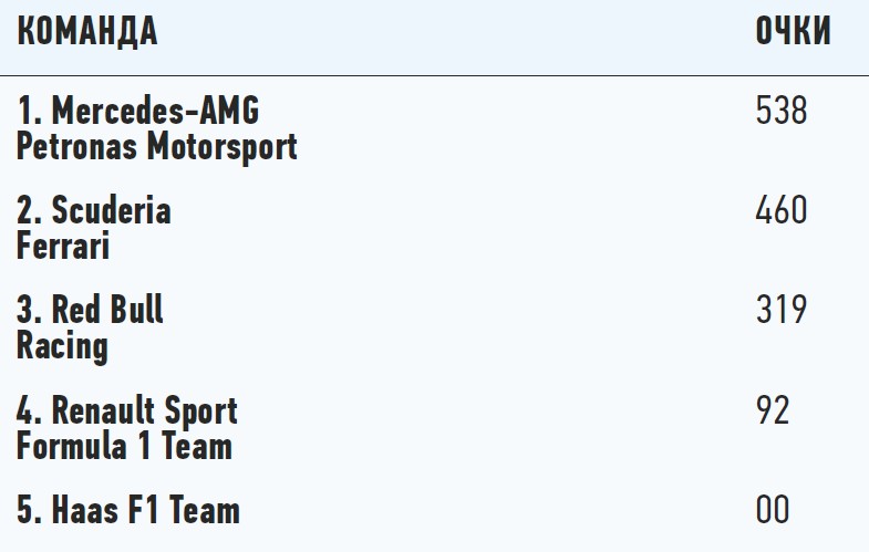 Положение в чемпионате: кубок конструкторов