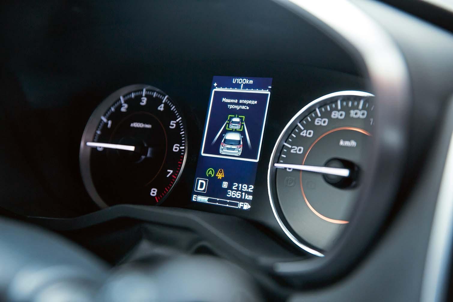 В 2013 году в Европе была представлена система EyeSight третьего поколения. И нынешней весной прибыла к нам вместе с кроссовером Subaru XV. Устройство и принцип ее действия не изменились – фиксация объектов происходит посредством двух установленных параллельно видеокамер. Накладывая одно изображение на другое, встроенный процессор вычисляет расстояние до препятствия и дает команду исполнительным механизмам. Теперь это не только звуковые и визуальные предупредительные сигналы. Определив опасное сближение с другим автомобилем, велосипедистом или пешеходом, система активирует тормоза и может полностью остановить машину на скорости до 50 км/ч. В ее силах «придушить» и тягу мотора, если в непосредственной близости со стенкой или чужим бампером водитель опрометчиво нажал на газ. Кроме того, выдерживая заданную дистанцию, EyeSight 3 обеспечивает комфортную работу активного круиз-контроля и чутко следит за разметкой, готовясь при произвольном пересечении ограничительных линий, самостоятельно вернуть машину в полосу. И это лишь несколько ключевых ее функций. Остальные, чтобы не перегружать монотонным перечислением всех достоинств системы, мы предпочли указать в подписях к иллюстрациям.