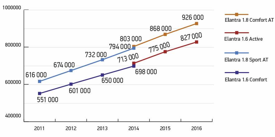 Стоимость Hyundai Elantra на вторичном рынке